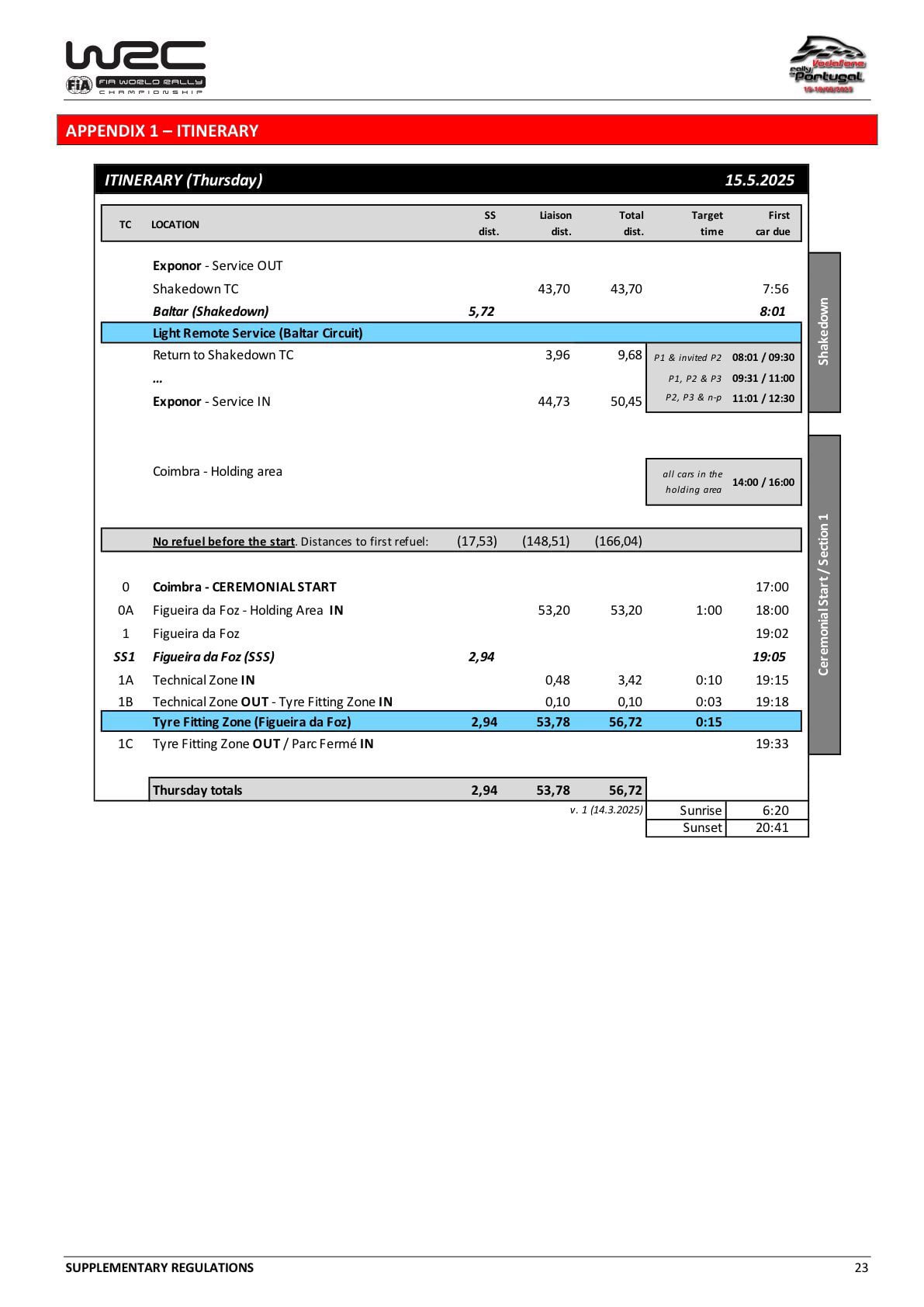 Paredes y Baltar serán escenario del shakedown en la mañana del jueves, mientras que Coimbra albergará la salida protocolaria y Figueira da Foz la primera SS del rallye el jueves con la que se dará inicio a la prueba, al igual que el año pasado.