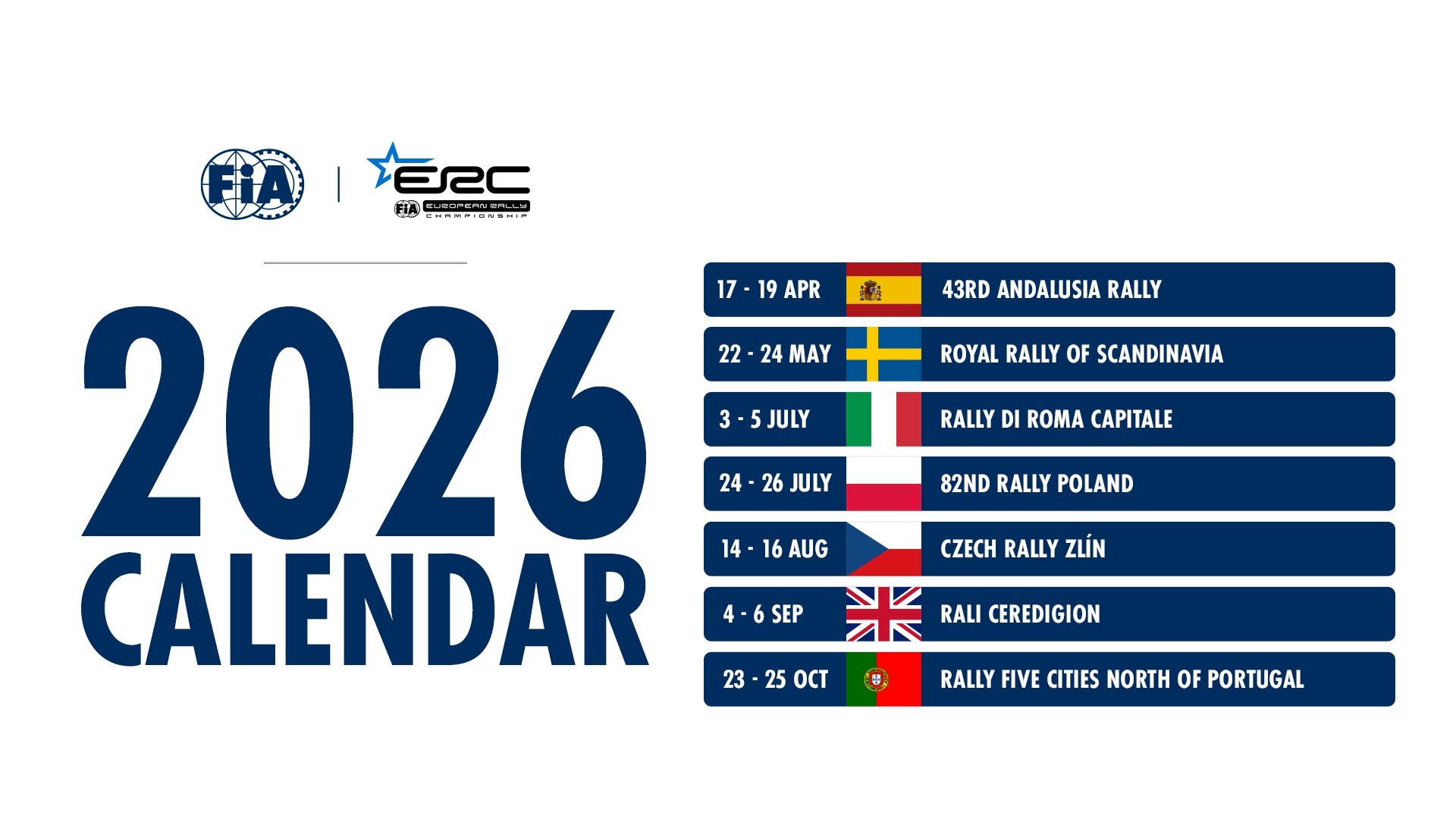 El ERC finalmente contará con solo siete pruebas, después de que el Rallye de Hungría tuviese que ser suspendido, se rumoreaba con la entrada de una nueva prueba sobre tierra, pero finalmente no ha sido así.