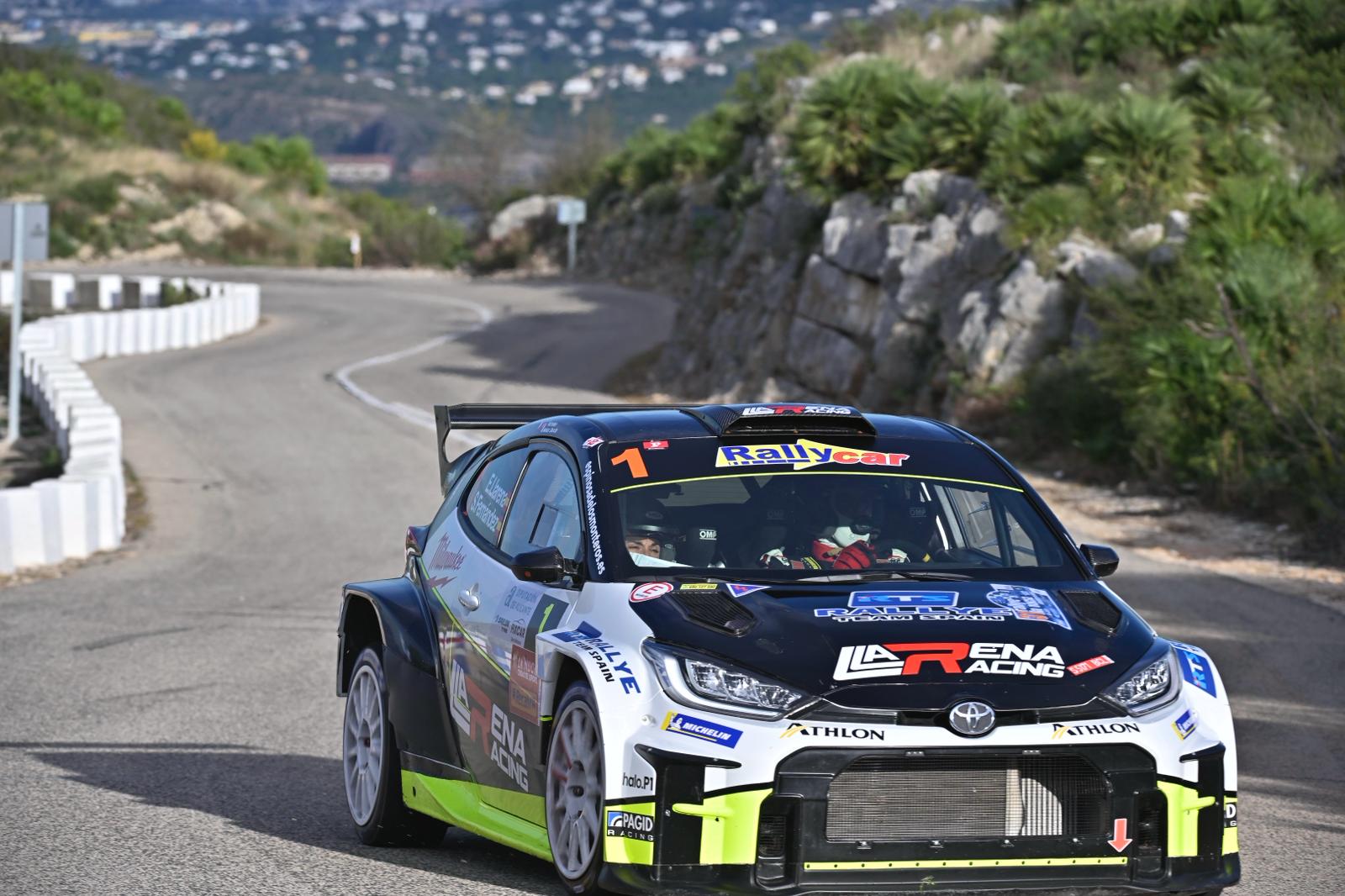 Efrén Llarena y Sara Fernández, a bordo del Toyota GR Yaris Rally2, han marcado el primer scratch en la 31 edición del Rallye La Nucía Mediterráneo, al establecer un tiempo de 9:32.7 en los 15,8 kilómetros del tramo Pinos-Xaló con el que arrancó la prueba desde la Ciutat Esportiva Camilo Cano de La Nucía.